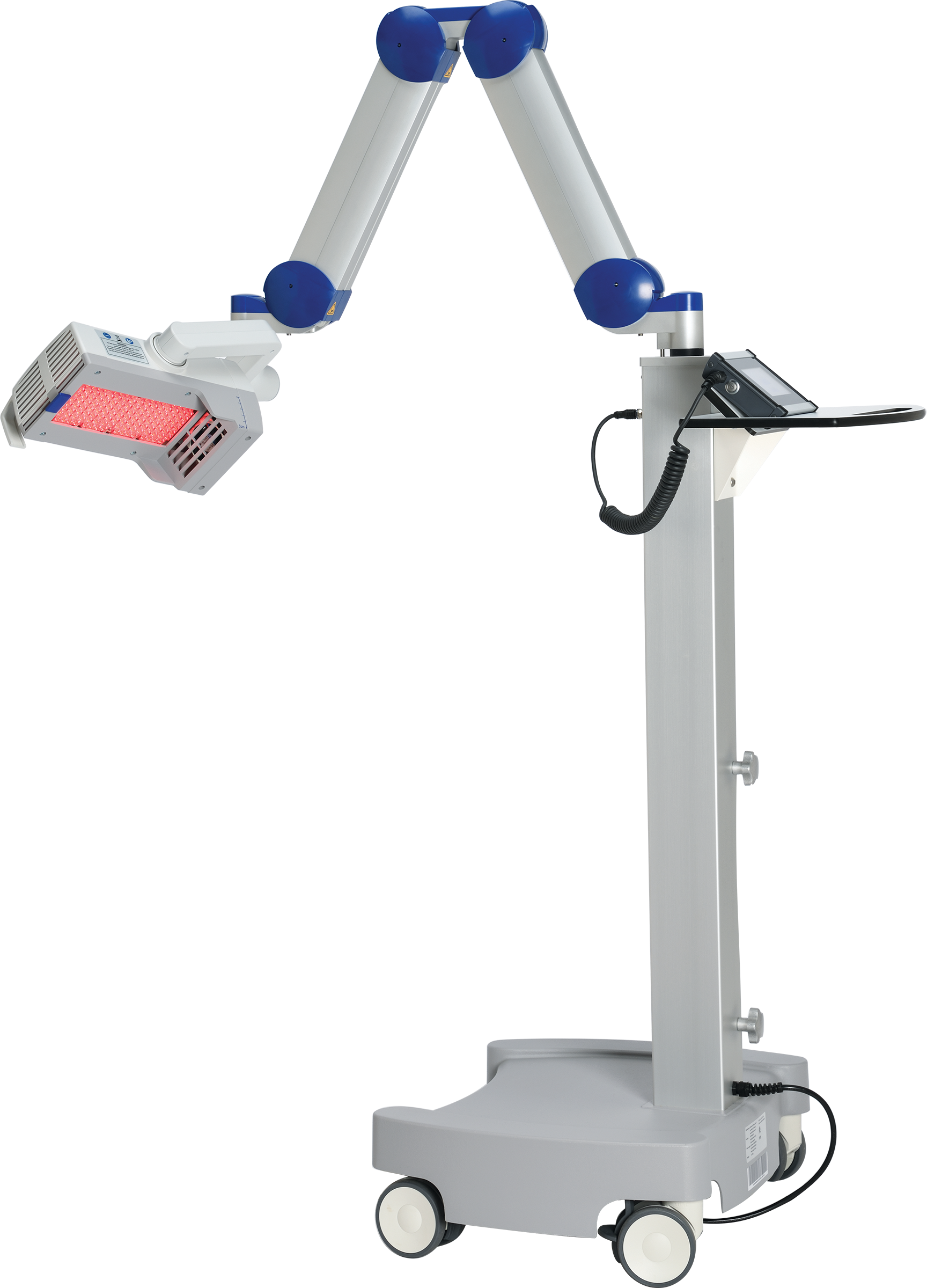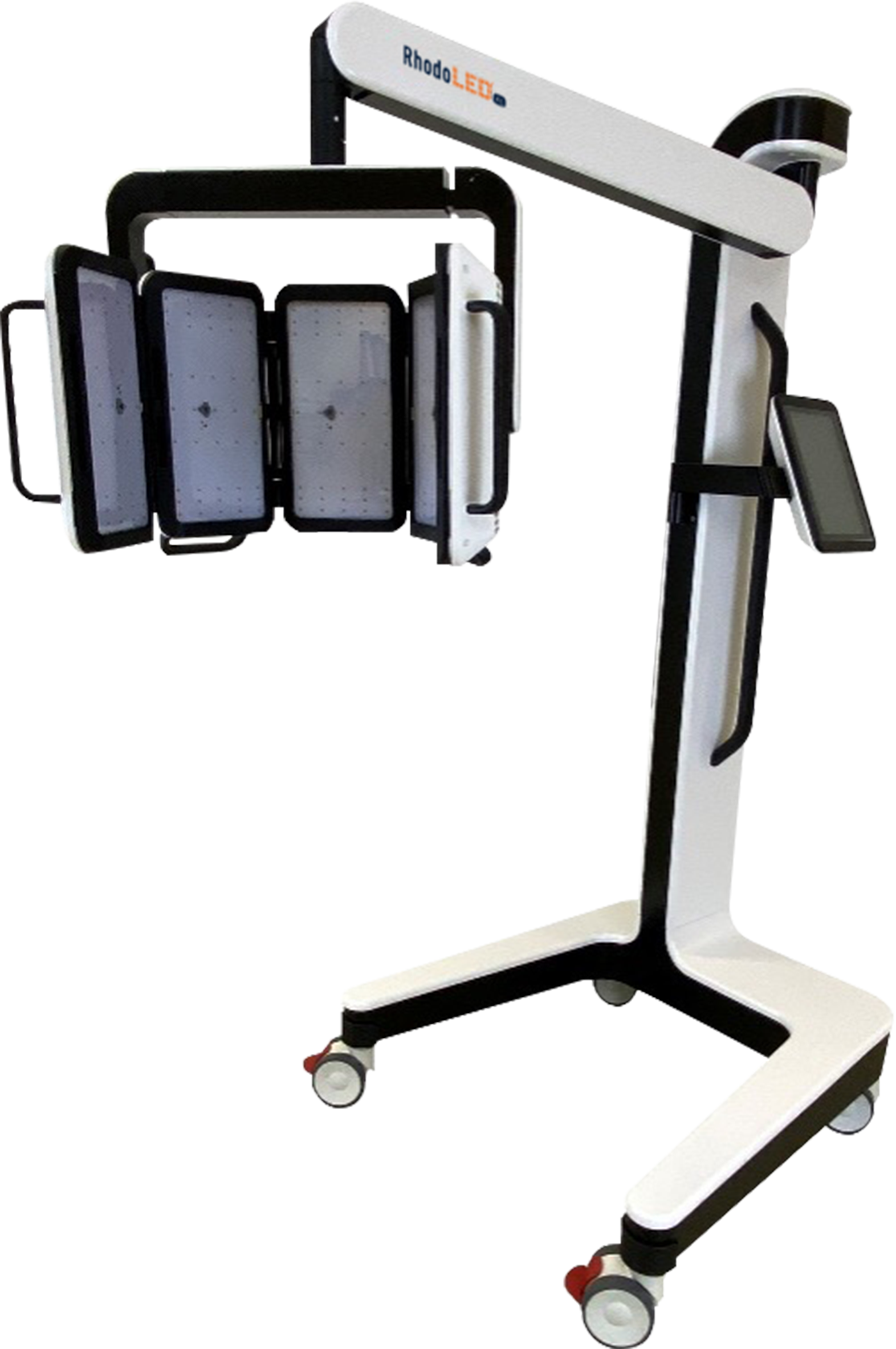 BF‑RhodoLED® or its components should not be exposed to excessive mechanical stress. Assembly and servicing may only be carried out by Biofrontera certified professionals. Risk of trapping fingers! The mobility of the adjustable scissor arm may be obstructed by objects placed in or near slots! Beware of tipping! Do not place the lamp on uneven or unstable surfaces. Do not place heavy objects on the storage shelf or use for sitting, leaning or pushing. In order to avoid the risk of electric shock, the device may only be connected to a power supply with a grounded connection. BF‑RhodoLED® may not come into contact with water as this may lead to severe damage or electrical shock (exception: cleaning with a damp cloth). Eye exposure to the red light of the BF‑RhodoLED® lamp during PDT must be prevented by protective eyewear. Direct staring into the light source must be avoided. AMELUZ® increases photosensitivity. Patients should avoid sunlight, prolonged or intense light (e.g., tanning beds, sun lamps) on lesions and surrounding skin treated with AMELUZ® for approximately 48 hours following treatment whether exposed to illumination or not.