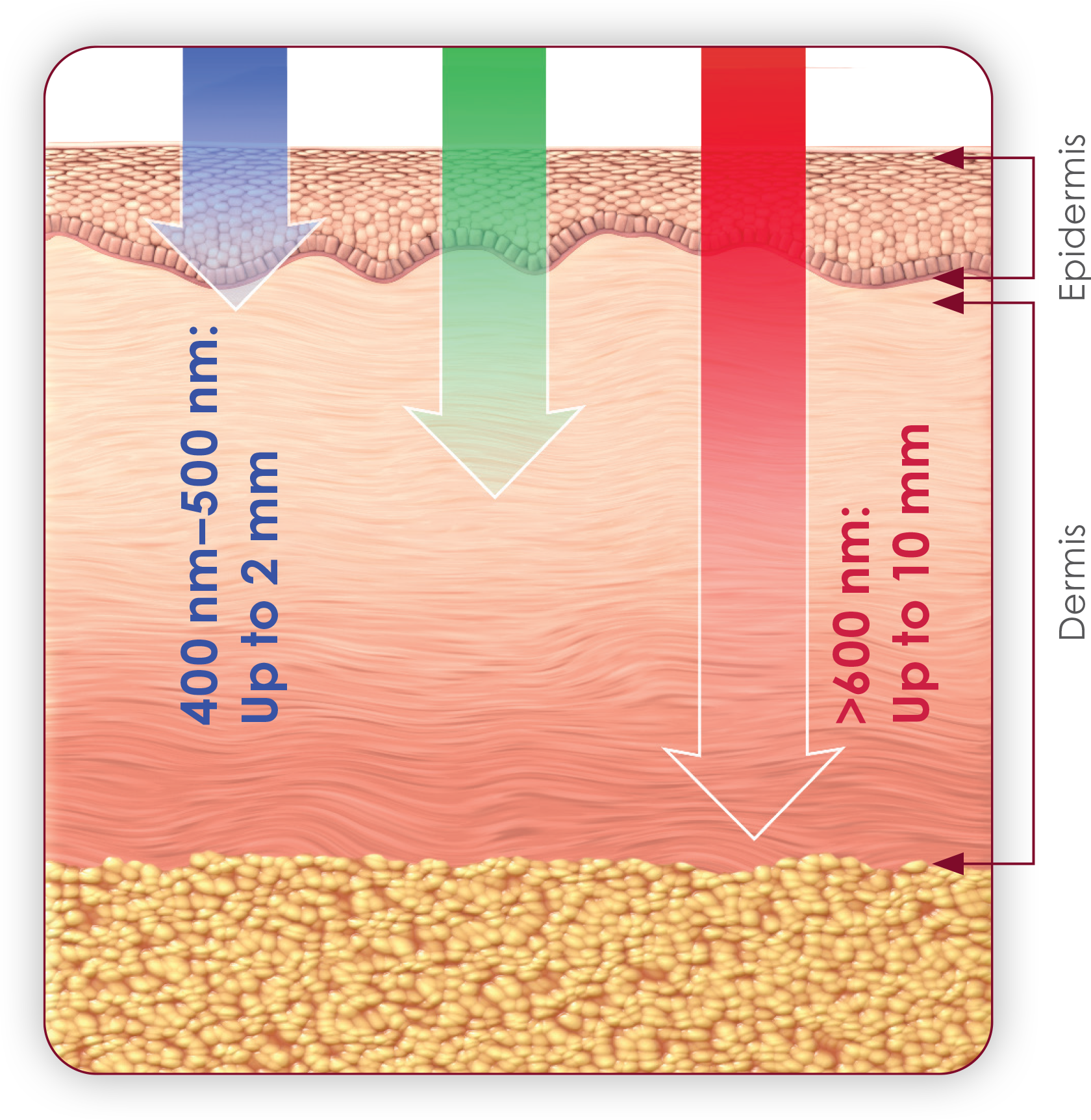 Estimated depth of light penetration into human skin1