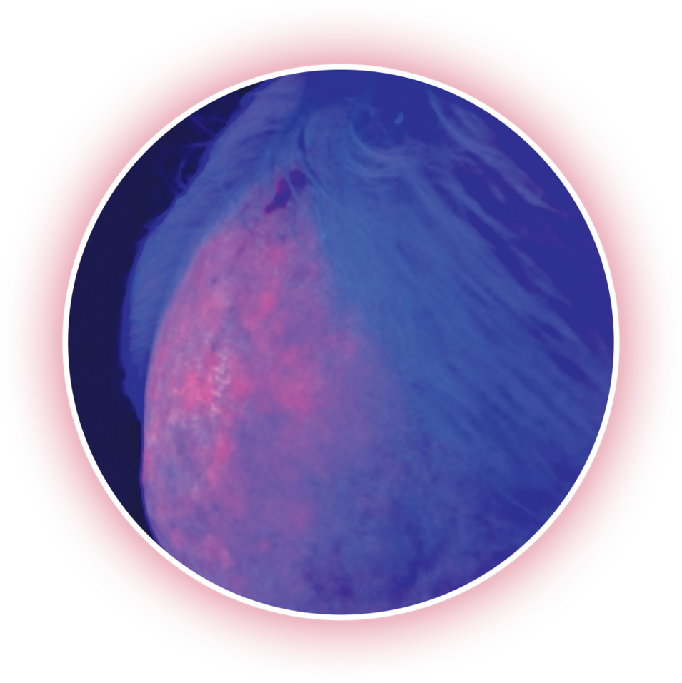 Fluorescence imaging reveals underlying lesions.
